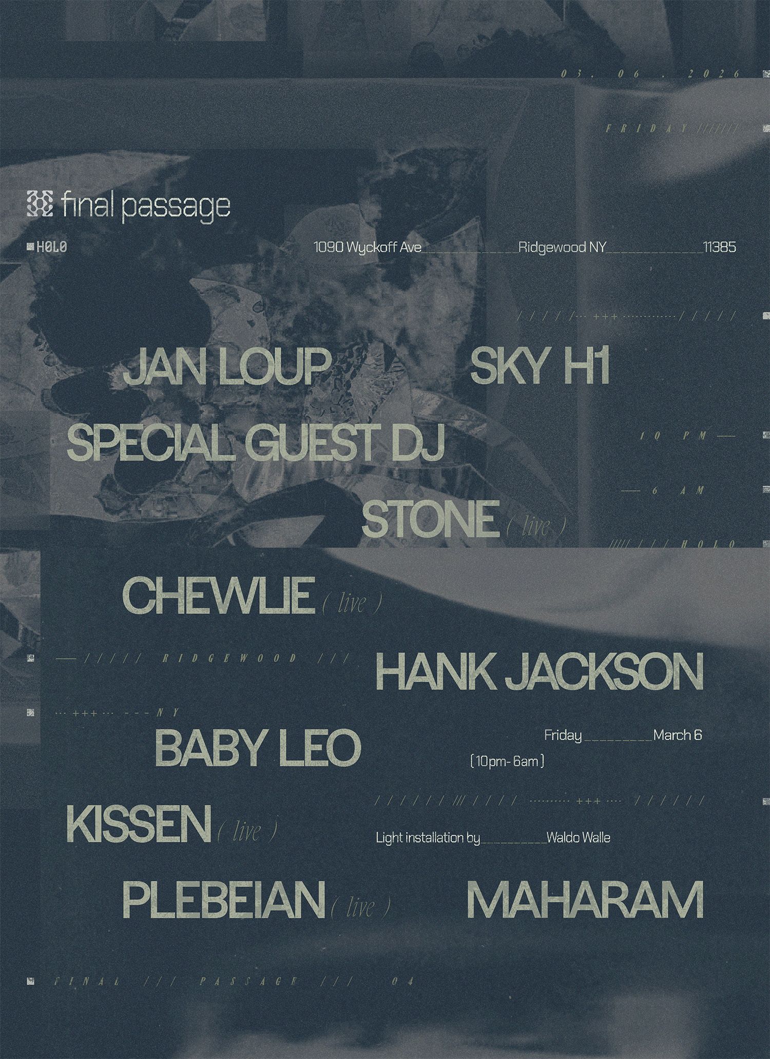 Two rooms, many sounds. Local party Final Passage takes over H0L0 with an enticing programme of live sets that will get the blood pumping.